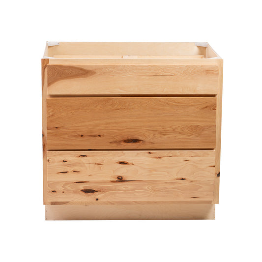 Backwoods Cabinetry RTA (Ready-to-Assemble) B36.3D - Raw Hickory 3 Drawer 36" Pots and Pans Base Cabinet | 36"Wx34.5"Hx24"D