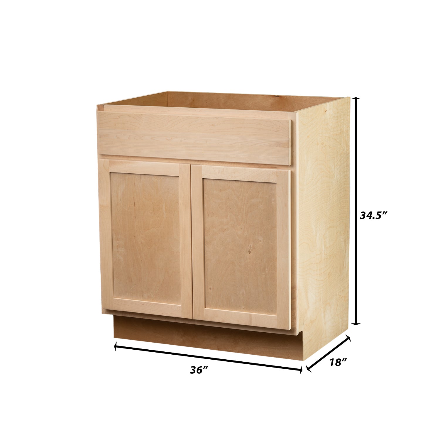 Backwoods Cabinetry RTA (Ready-to-Assemble) VSB36.34.18 - Raw Maple Vanity Base Cabinet | 36"Wx34.5"Hx18"D